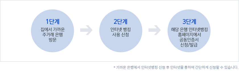 가까운 은행에서 인터넷 뱅킹 신청 후 공동인증서 발급을 추천합니다.